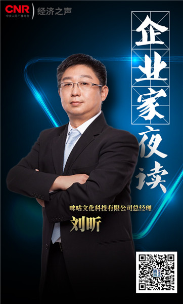 導(dǎo)讀:2018年,中央人民廣播電臺經(jīng)濟之聲全新推出《企業(yè)家夜讀》,這是一檔面對企業(yè)家群體及關(guān)心關(guān)注這個群體朋友們的閱讀朗讀節(jié)目。每周日晚九點,我們都會相聚在電波里。今天做客《企業(yè)家夜讀》的,是咪咕文化科技有限公司總經(jīng)理劉昕。