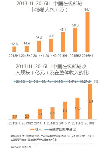 數(shù)據(jù)顯示,2016上半年中國(guó)在線(xiàn)郵輪市場(chǎng)總出游人次達(dá)94.1萬(wàn),同比增長(zhǎng)102.8%,總收入(交易額)18.6億元,同比增長(zhǎng)100%,占整個(gè)郵輪市場(chǎng)的54.4%,比去年同期提高了8個(gè)百分點(diǎn)。