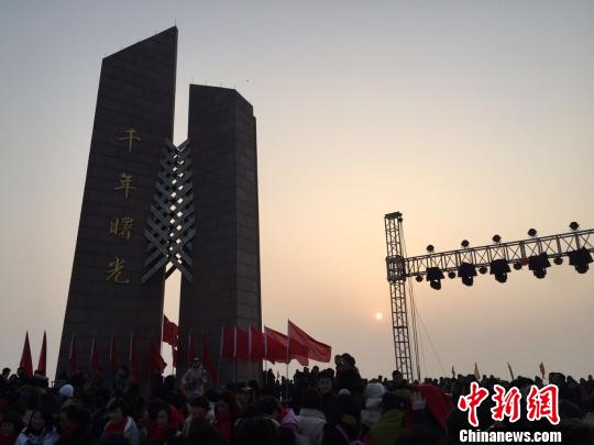 圖為在千年曙光碑下的新年第一輪太陽(yáng) 孔雁婷 攝