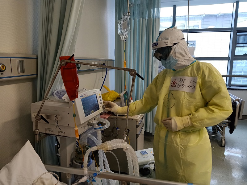 此后的幾十天里,經(jīng)歷過氣管插管、有創(chuàng)無創(chuàng)呼吸機調(diào)整、動脈穿刺、中心靜脈穿刺、俯臥位通氣、休克搶救等一系列訓(xùn)練,吳超的工作越來越上手。在緊張而忙碌的工作中,他和隊友也不斷地把患者從死亡線上拉回來,遇到焦慮的病人,還經(jīng)常跟他們聊天交流,疏解病人的焦慮心情。
