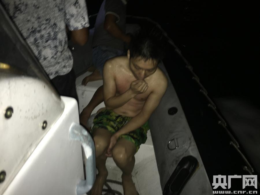 福建海警二支隊今晨成功救起1名落水群眾(央廣網(wǎng)發(fā) 游訓(xùn)利 李晨攝) 據(jù)悉,被救村民張某楠,系泉州臺商投資區(qū)秀涂村村民,14日下午天氣炎熱,于是只身驅(qū)車前往秀涂海域的淺灘踏浪泡澡。20時許,他走到深水區(qū),玩得正起勁,沒注意潮水上漲,危險正悄悄臨近。剛才身后的沙灘已完全被海水覆蓋,張某楠想回到岸邊,卻被一個大浪卷走。由于不會游泳,只能拼命在水中掙扎,歷盡千辛才抓到一個漁網(wǎng)浮球,幸好被海警官兵趕到救起。