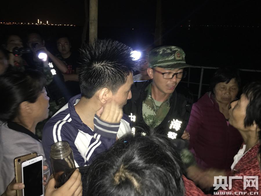 福建海警二支隊今晨成功救起1名落水群眾(央廣網(wǎng)發(fā) 游訓(xùn)利 李晨攝) 救援小組組長張聰下達(dá)指令:“根據(jù)潮汐和風(fēng)向判斷,現(xiàn)在是漲潮時間,又是吹攏風(fēng),人應(yīng)該會往港內(nèi)漂,我們?nèi)O網(wǎng)區(qū)仔細(xì)尋找!庇纸(jīng)過半個多小時的拉網(wǎng)式搜索,海警官兵在一漁網(wǎng)上發(fā)現(xiàn)該落水村民,光著膀子、手抓浮球,只有頭部露在水面上,臉色發(fā)白、十分虛弱。官兵邊喊話邊拋救生圈給該落水人員,成功將其救起,并為他穿上迷彩服保暖,確認(rèn)身體狀況良好后,將其安全交給親人。