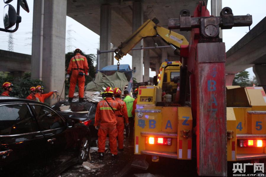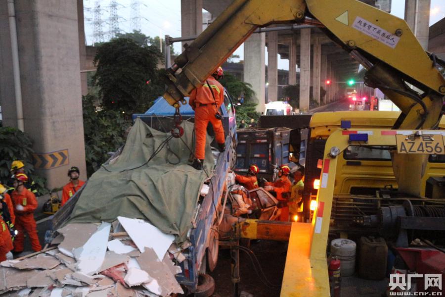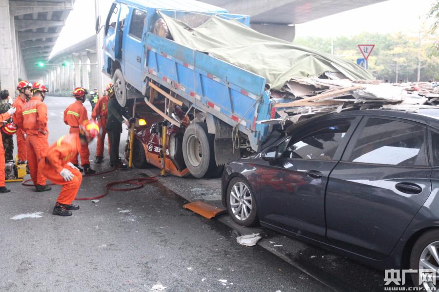 央廣網(wǎng)深圳2月20日消息(記者李強(qiáng) 通訊員黃源 唐麗曼)記者從深圳消防獲悉,2月19日17時(shí)35分,深圳南山區(qū)南海大道與留仙大道交界處往北方向發(fā)生一起七車連環(huán)相撞的嚴(yán)重交通事故,現(xiàn)場有人員被困。西麗消防中隊(duì)接警后立即出動3輛消防車15名指戰(zhàn)員火速趕赴現(xiàn)場處置。 據(jù)了解,事故為兩輛貨車、一輛駕校教練車、一輛混凝土攪拌車、兩輛小轎車和一輛SUV車七車連撞。其中教練車被夾在兩輛貨車中間,被后車埋壓,整車已嚴(yán)重變形,車內(nèi)有一女子被困,并有多車漏油。消防員立即展開救援行動,用水槍對漏油的車輛進(jìn)行稀釋冷卻,同時(shí)利用支撐頂桿撐起埋壓小車的大車,配合120救援人員對被困人員進(jìn)行輸液,為避免傷者收到二次傷害,中隊(duì)指揮員協(xié)調(diào)交警出動大吊車對壓頂?shù)牡踯囘M(jìn)行起吊,在壓住小車的大車被調(diào)開之后,消防員利用液壓擴(kuò)張器將嚴(yán)重變形的小車進(jìn)行破拆,成功將被困人員救出。在場的醫(yī)務(wù)人員立即將其送往醫(yī)院救治。