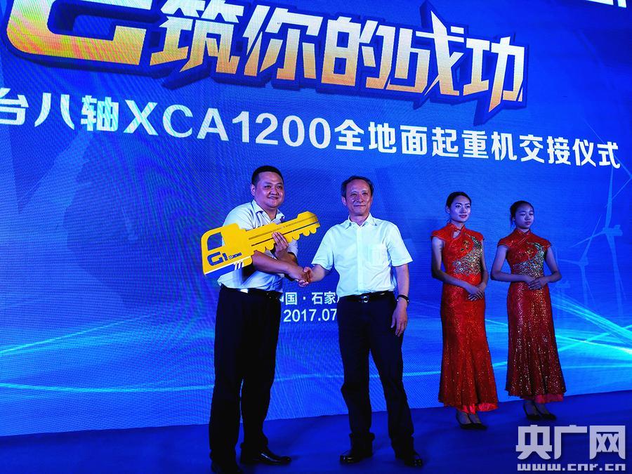 徐工集團董事長王民將XCA1200金鑰匙交付用戶手中 央廣網南京7月12日消息(記者楊守華 通訊員孫冬杰)來自全國風電吊裝領域的數(shù)百位企業(yè)家近日齊聚河北石家莊,共同見證了全球首臺八軸千噸級全地面起重機交接儀式。徐工“G筑你的成功”全國風電領域大客戶會議、徐工G一代區(qū)域新品推廣會、“G能大咖”徐工起重機械事業(yè)部吊裝專家年度技能挑戰(zhàn)賽(石家莊站)也同期舉行。 此次交付的XCA1200全地面起重機,是G技術平臺上打造的巔峰之作。從設計之初,XCA1200就汲取大量千噸級風電施工現(xiàn)狀數(shù)據(jù)和發(fā)展需求趨勢,擁有全閉式液壓系統(tǒng)、智能臂架、新型單缸插銷、G一代外觀造型、人機交互系統(tǒng)等12項“G一代”原創(chuàng)技術。 八節(jié)單缸插銷伸縮臂,由超高強度鋼材制造而成的吊臂,具備安裝約2.5兆瓦風電的能力。同時,XCA1200可通過模塊組合變化成通用機型與風電機型,用戶可選裝固定副臂、塔臂。配合徐工成熟的超起組合臂技術,可有效減少起重機臂變形,使整機起重性能和安全性能得到大幅度提升。 此外,XCA1200全地面起重機的顛覆性設計在于底盤的優(yōu)化,八橋底盤可實現(xiàn)全輪轉向。底盤技術中的關鍵是油氣懸架系統(tǒng)和多橋轉向系統(tǒng)設計,這兩項技術都是全地面起重機的獨有技術。 徐工集團董事長王民說,“這是讓世界老牌起重裝備制造商真正感受到的強大競爭力量,也是支撐徐工成為全球超級起重裝備領域‘塔尖上舞蹈’的新的引領者! 此次交付的這臺全球首臺八軸XCA1200全地面起重機,是中國超級起重裝備創(chuàng)新攻關又一個里程碑,在技術上是真正的全球獨創(chuàng),有完全自主擁有的12項核心專利,能夠適應最苛刻風電施工環(huán)境的挑戰(zhàn)。 “新能源吊裝生態(tài)云平臺”眾籌計劃同時在交接儀式上啟動,據(jù)了解,該計劃將對中小企業(yè)會有很大幫助。企業(yè)用戶可以通過APP軟件、微信解決日常出現(xiàn)的技術問題、運營問題(如收費問題、轉場費用等),及各地區(qū)政策方針建議提醒等。
