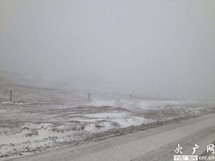 圖為內(nèi)蒙古西部 河套平原西北磴口縣至烏拉特后旗境內(nèi),S312省道的風(fēng)雪天氣。(金建軍攝)