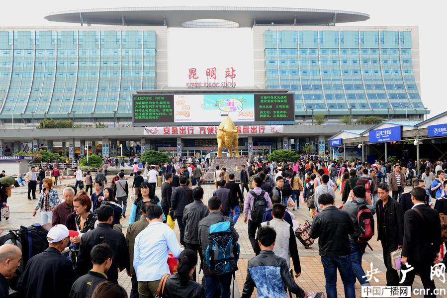 4月30日,大批出行的旅客走進(jìn)昆明火車站(汪建云 攝)