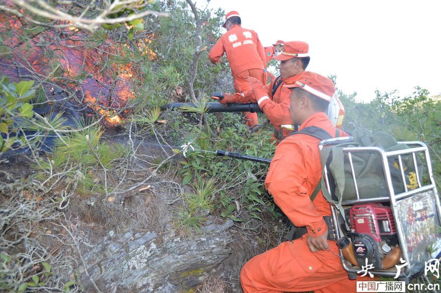 5月21日19時(shí),火勢(shì)蔓延至楚雄州祿豐縣勤豐鎮(zhèn)沙龍村境內(nèi)。當(dāng)晚9時(shí)30分,武警云南森林總隊(duì)普洱支隊(duì)駐楚雄州執(zhí)勤大隊(duì)45名官兵從楚雄市從發(fā),于22日凌晨0點(diǎn)40分到達(dá)現(xiàn)場(chǎng)。5月22日10時(shí)10分,45名參戰(zhàn)官兵轉(zhuǎn)移到鄭家溝火場(chǎng)西北線,采取以火攻火、打燒結(jié)合的戰(zhàn)術(shù),全力阻截西北火線。據(jù)了解,由于火場(chǎng)密灌叢生,山高坡陡,風(fēng)力達(dá)到5級(jí)以上,改線救火官兵無(wú)法直接撲打。