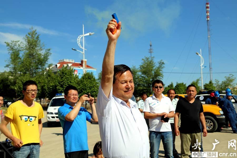 新疆阿拉山口市市長尤力瓦斯·巴吐爾鳴槍發(fā)令(央廣網(wǎng)記者 張雷 攝)