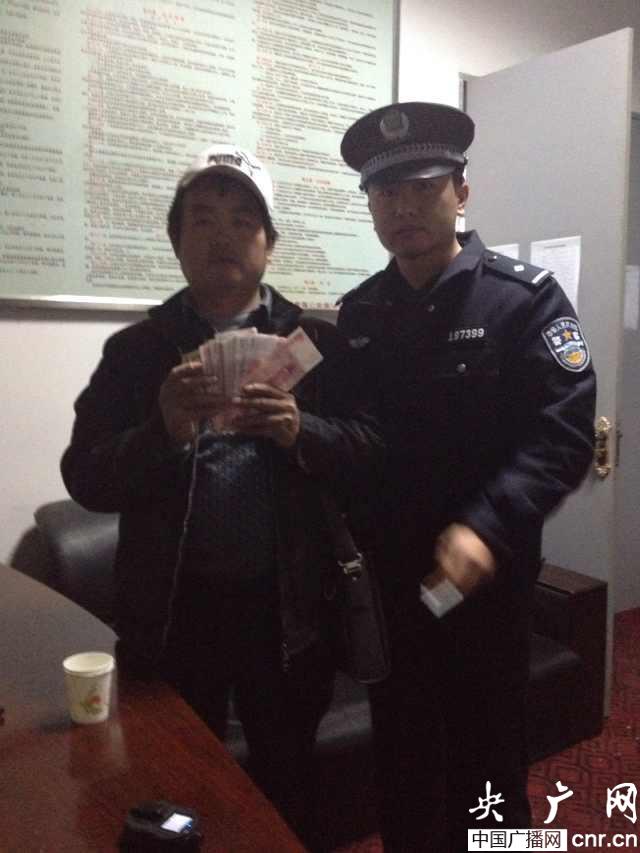 當晚9時13分,陳先生趕到黃州火車站,接過劉所長遞過來的錢包,熱淚盈眶,并拿出500元現(xiàn)金表示感謝,被民警婉拒。