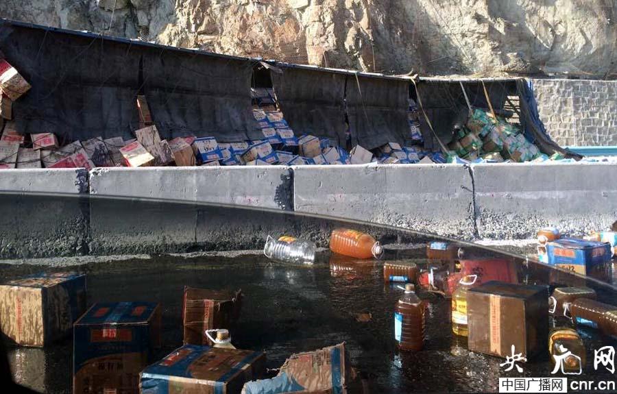 央廣網(wǎng)烏魯木齊1月18日消息(記者張雷、通訊員伊力哈木)今天下午14:23,新疆烏魯木齊至吐魯番方向G30高速公路3499公里處,一輛拉運食用油的貨車側(cè)翻,塑料桶裝食用油散落公路,食用油從破損的塑料桶中流出,路面油滑車輛無法行駛,造成大量車輛和人員滯留。