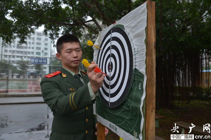 雖然天空下了點(diǎn)小雨,但營區(qū)里還是人頭攢動(dòng),上午9時(shí),伴著一首歡快的《恭喜發(fā)財(cái)》,春節(jié)游園活動(dòng)正式拉開帷幕,官兵們及軍人家屬踴躍參與,瞧!在游園現(xiàn)場,猜謎語、對對聯(lián)、夾彈珠、美食釣、套鴨子、小李飛刀、好運(yùn)連連、套圈、瞎子敲鑼等趣味活動(dòng)等每個(gè)項(xiàng)目都圍滿了官兵和家屬,活動(dòng)既有趣味性、廣泛性和娛樂性,過關(guān)了還能活動(dòng)各類小獎(jiǎng)品。一瓶牙膏、一條毛巾、一袋小零食、一個(gè)吉祥羊……,設(shè)置的獎(jiǎng)品雖然不貴,但個(gè)個(gè)玩得很盡興,臉上笑開了花。
