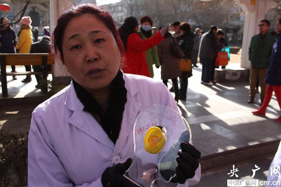 專業(yè)醫(yī)護(hù)人員介紹助聽器(央廣網(wǎng)記者 廉軍 攝)