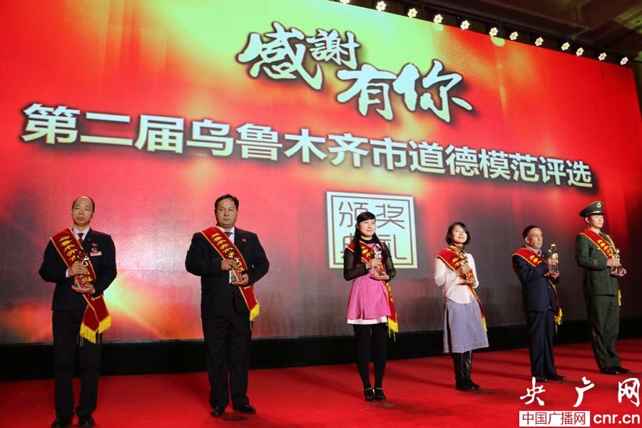 在道德模范頒獎(jiǎng)典禮上,模范們的事跡感動(dòng)著現(xiàn)場觀眾,各類模范來自不同民族、不同崗位,他們的善行義舉展示了烏魯木齊和諧、文明、友愛的城市形象。近年來,在創(chuàng)建全國文明城市的進(jìn)程中,烏魯木齊市涌現(xiàn)出一大批在各行各業(yè)表現(xiàn)突出的優(yōu)秀代表,他們用自己的行動(dòng)引領(lǐng)和影響著周圍的人,形成了一股強(qiáng)大的正能量,為構(gòu)建和諧文明烏魯木齊做出了積極的貢獻(xiàn)。2014年,烏魯木齊獲得了“全國文明城市”的提名資格和全國未成年人思想道德建設(shè)工作先進(jìn)城市。