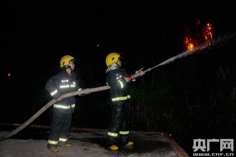 梧州市消防支隊(duì)連夜投入滅火。(央廣網(wǎng)發(fā) 雷開偉 攝)