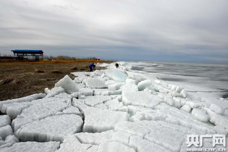 游客張丹對(duì)記者說(shuō):“足足有五十公分厚的冰塊從湖區(qū)吹到湖邊,感覺(jué)特別神奇、壯觀,體會(huì)到大自然的鬼斧神工!