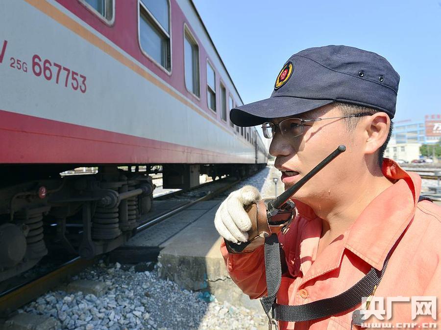 央廣網(wǎng)合肥8月5日消息(記者梁明星 通訊員蘇楠、李博)合肥連日高溫,氣象臺連續(xù)發(fā)布高溫預(yù)警。就在這樣的“三伏天”,鐵路職工高溫中堅守崗位一線,保證客運列車能夠及時發(fā)車,確保旅客安全出行。