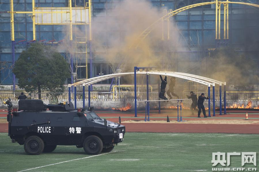 據了解,合肥市民除了現(xiàn)場參觀狙擊步槍、92手槍、霰彈槍等單警特戰(zhàn)外,黑豹突擊隊隊員為大家展示對模擬的暴恐分子營地進行打擊的戰(zhàn)術訓練科目,讓市民大開眼界。