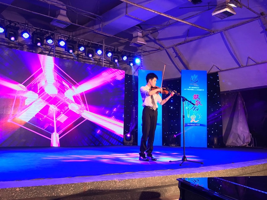 來自臺灣的王榮堅在表演小提琴獨奏