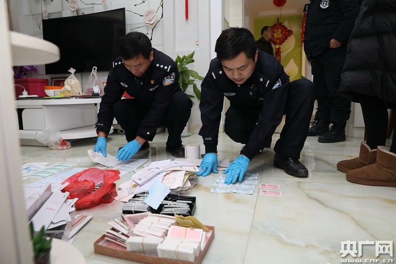 民警從嫌疑人制假窩點中查獲還未寄出的成品假火車票。央廣網(wǎng)發(fā) 田昊 攝