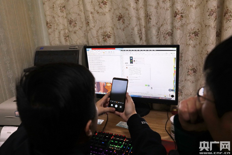 民警對照檢查作案手機(jī)及電腦。央廣網(wǎng)發(fā) 田昊 攝