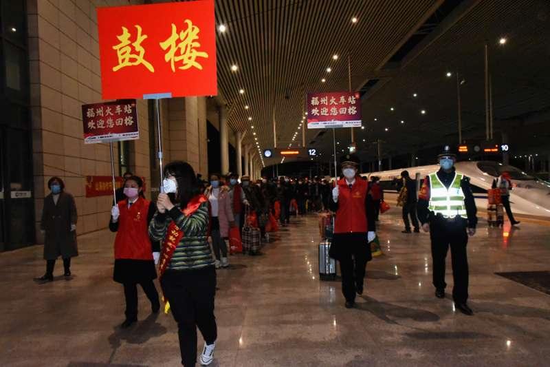 為確保這批復工人員順順利利出站、平平安安回到企業(yè),福州市人力資源和社會保障局協(xié)同福州火車站開展了點對點服務(wù)。福州火車站組建了一支15人的黨團員青年突擊隊,在站臺上做好這批務(wù)工人員的出站引導,并開辟了2個務(wù)工人員專用通道出站。