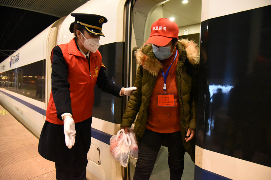 央廣網(wǎng)福州2月22日消息(記者張子亞)昨晚21時01分,由蘭州西站開往福州的G4704次列車緩緩停穩(wěn)在福州站站臺。該趟列車搭載著來自甘肅定西市安定區(qū)、漳縣、岷縣等地的519名務(wù)工人員以及地方工作人員、公安干警、醫(yī)務(wù)人員27人,這是鐵路部門開行的首趟前往東南沿海地區(qū)的定制高鐵復工專列。