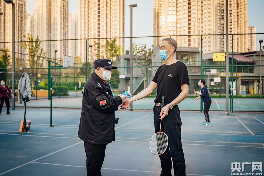 記者上午在趙家山體育文化公園看到,管理單位在園內(nèi)人群較多的地方設(shè)置了體溫監(jiān)測點,隨時對入園市民進行體溫檢測。乒乓球臺、籃球場、羽毛球場地已經(jīng)被市民充分利用起來。來鍛煉的張學(xué)武先生是附近小區(qū)的居民,他說,自己平時就喜歡打打球,喜歡運動,可疫情不能隨意出門,把他憋壞了,“我家就住在這個公園旁邊的樓上,在陽臺上能看到公園的全貌。今天一早我看到公園開放了,就趕緊過來運動一下,恢復(fù)一下”。