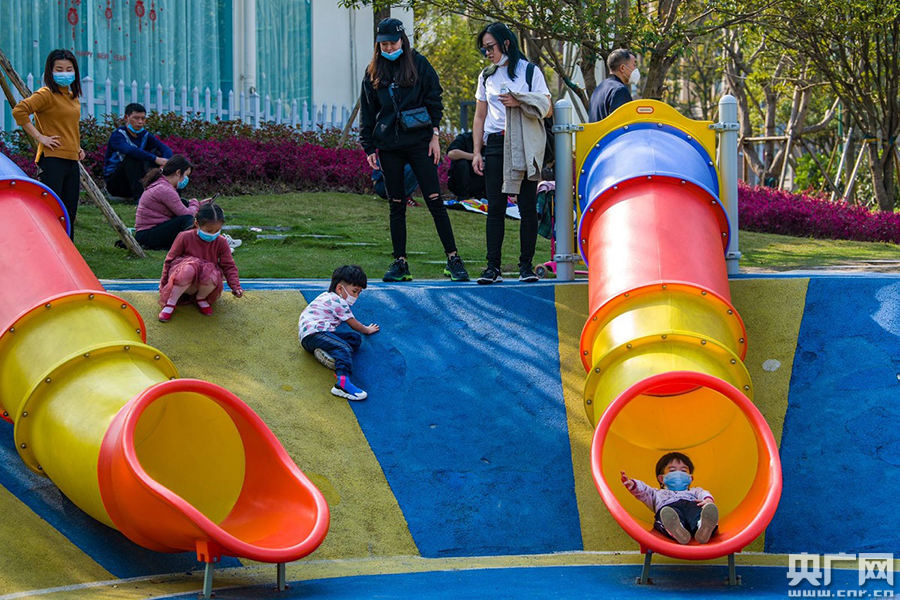小朋友在公園內(nèi)玩滑梯(央廣網(wǎng)發(fā) 規(guī)劃自然資源局供圖)