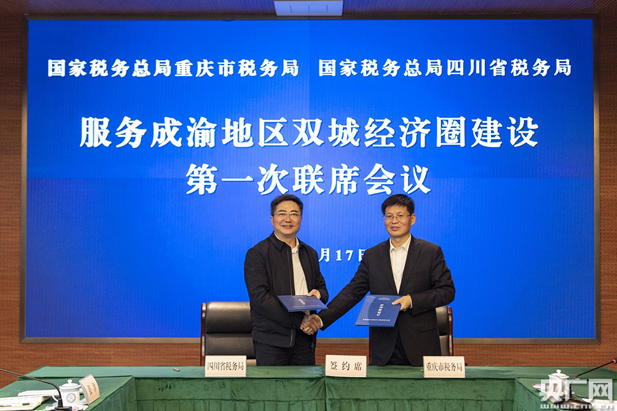 國家稅務(wù)總局重慶市稅務(wù)局和國家稅務(wù)總局四川省稅務(wù)局簽訂服務(wù)成渝地區(qū)雙城經(jīng)濟(jì)圈建設(shè)合作備忘錄(央廣網(wǎng)發(fā) 張霄羽 攝)