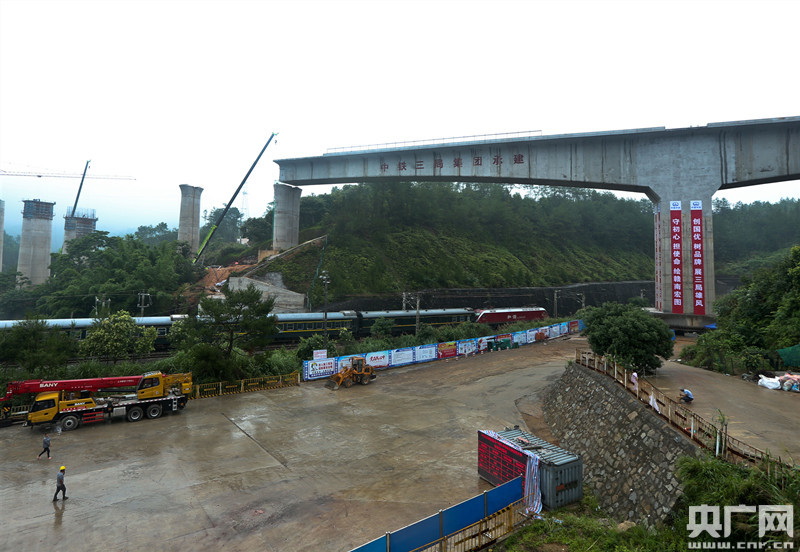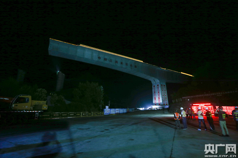贛深高鐵跨度最大T構轉體橋成功轉體(央廣網發(fā) 通訊員張學東 攝)