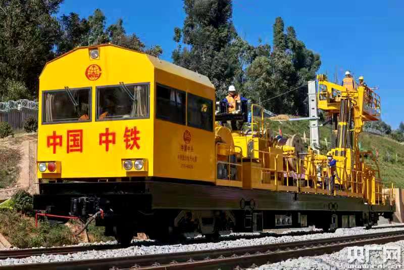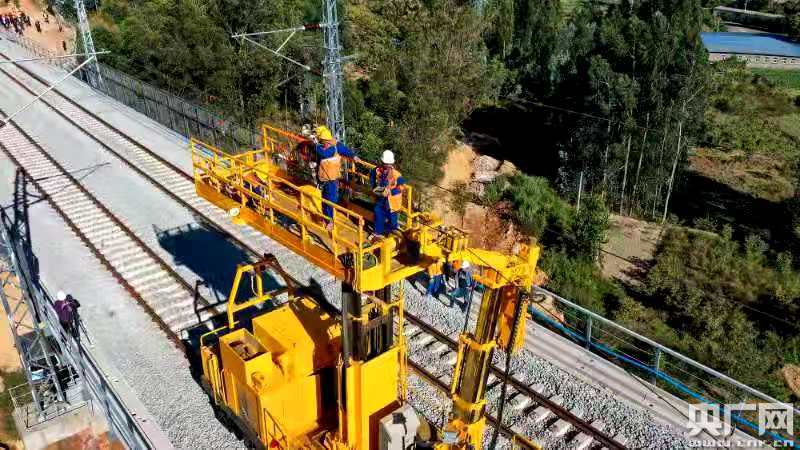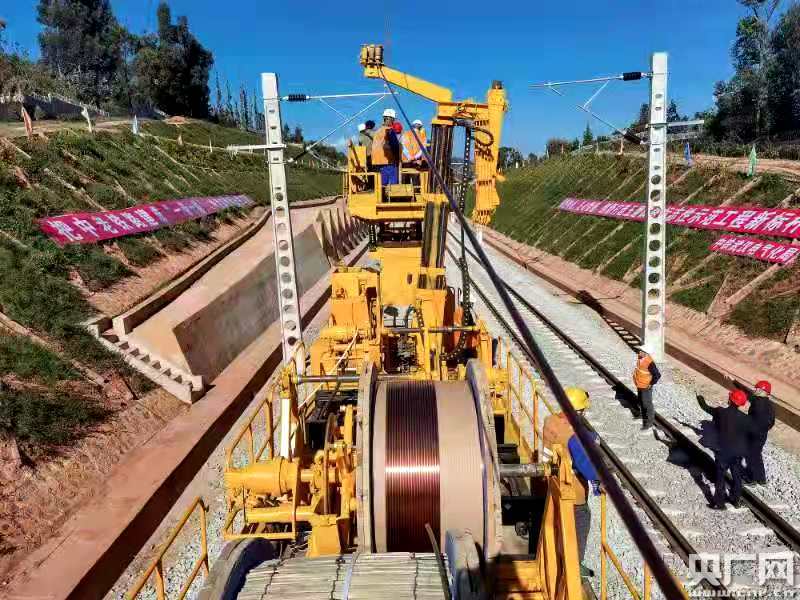 央廣網(wǎng)玉溪11月19日消息(記者李健飛 通訊員王旭東 周志強 鄒曉峰)11月19日,中老鐵路國內(nèi)段云南玉溪研和至峨山區(qū)間,全線首條電氣化接觸網(wǎng)導(dǎo)線開始架設(shè),與此同時,國外段萬象北至萬象區(qū)間同步架設(shè)接觸網(wǎng),標(biāo)志著中老鐵路全線“四電”工程施工進(jìn)入施工關(guān)鍵階段。