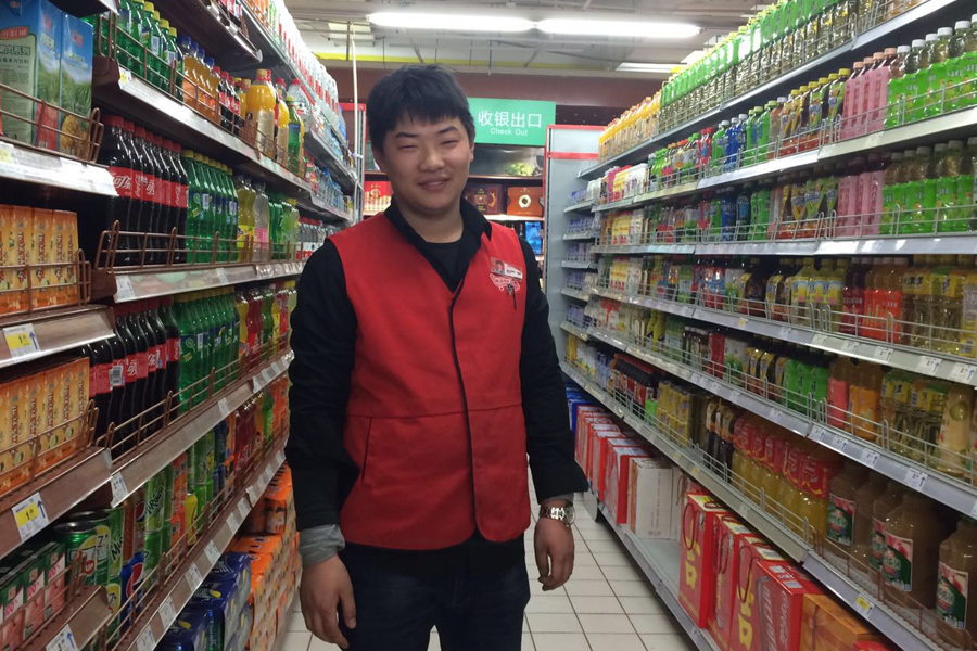 陳晨,男,27歲,河南省安陽市麥多超市飲酒科科長,負責超市酒水的調度、補貨、上貨等工作。在他工作的5年時間里,雖然已經從該超市的一名普通的搬運工一步步晉升為飲酒科科長,但每天依然要幫其他員工一起搬貨上貨。春節(jié)期間,超市的工作量暴增,已經是遍布老繭的雙手還是有多處被磨破,但對他而言年年都是如此,一個繭印猶如一個年輪,是歲月的痕跡,也是責任的印記。