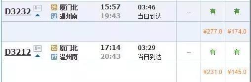 不光是溫州南至寧波段,沿海高鐵廈門北至寧波的部分車次,寧波至杭州、上海方向部分D字頭動(dòng)車票,也從9月開始出現(xiàn)折扣票。其中,廈門北至寧波的D3212次,折后二等座票價(jià)為221元(通常為278元),一等座353元(通常為445元),相當(dāng)于打8折;D3232次的二等座為265元,一等座424元,相當(dāng)于打9.5折。而寧波至廈門北的動(dòng)車票暫時(shí)沒有折扣。