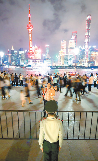 雙節(jié)期間,武警上海總隊九支隊的戰(zhàn)士在上海外灘執(zhí)勤。新華社記者 陳 飛攝