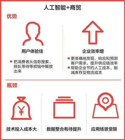“人工智能的出現(xiàn),將給商貿(mào)行業(yè)帶來革命性的變化。”范小軍說,商貿(mào)流通的最終效果集中體現(xiàn)為效率、成本和用戶體驗三個核心維度,傳統(tǒng)技術手段在提高這三個維度的績效上已經(jīng)面臨天花板,而人工智能則帶來新機遇。
