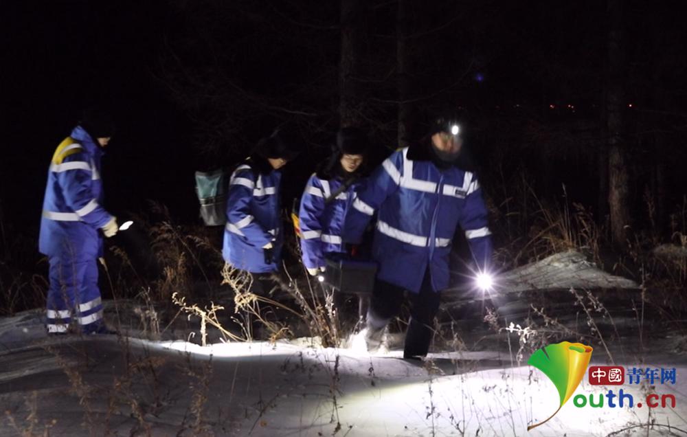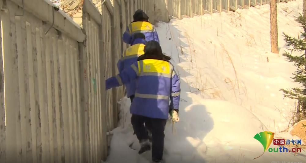 于源和同事在驅(qū)車抵達(dá)基站附近之后,踏雪徒步向山頂進(jìn)發(fā)。寒冬臘月,牡丹江市的室外溫度降到零下二十多攝氏度,風(fēng)吹到臉上像刀刮一樣!白咭粫䞍壕蛢霰亲!庇谠凑f,深山的積雪非常厚,這樣的環(huán)境穿棉鞋保暖已經(jīng)不頂用了,“盡量穿防滑鞋,用拐杖,防止打滑或者摔倒,保安全。”