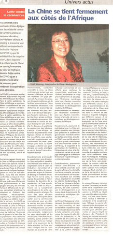 △駐馬達加斯加大使楊小茸在馬達加斯加主流媒體《午報》刊發(fā)署名文章《中國與非洲堅定站在一起》