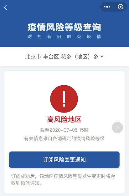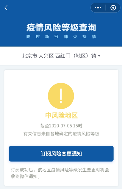 記者從國務(wù)院客戶端小程序“疫情風(fēng)險(xiǎn)等級(jí)查詢”上了解到,截至7月5日下午,北京市豐臺(tái)區(qū)長辛店街道、右安門街道,大興區(qū)安定鎮(zhèn),海淀區(qū)八里莊街道,通州區(qū)北苑街道疫情風(fēng)險(xiǎn)等級(jí)由中風(fēng)險(xiǎn)地區(qū)降級(jí)為低風(fēng)險(xiǎn)地區(qū)。北京市大興區(qū)西紅門(地區(qū))鎮(zhèn)由高風(fēng)險(xiǎn)變更為中風(fēng)險(xiǎn)地區(qū)。
