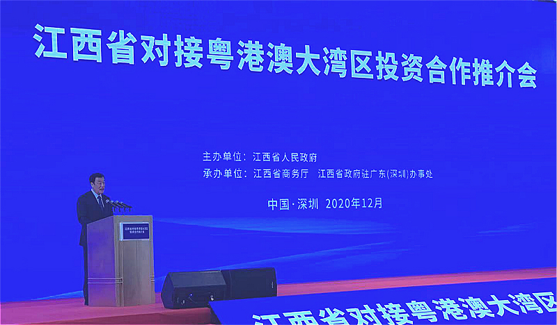 本次推介會(huì)由江西省人民政府主辦。會(huì)上,江西省委書記劉奇作主旨演講,他表示,江西區(qū)位優(yōu)越,是全國唯一同時(shí)毗鄰粵港澳大灣區(qū)、長三角經(jīng)濟(jì)區(qū)和海西經(jīng)濟(jì)區(qū)的省份,也是共建“一帶一路”、長江經(jīng)濟(jì)帶發(fā)展、鄱陽湖國家自主創(chuàng)新示范區(qū)、內(nèi)陸開放型經(jīng)濟(jì)試驗(yàn)區(qū)等政策集成、機(jī)遇疊加的“戰(zhàn)略高地”,且生態(tài)宜居、環(huán)境優(yōu)良。劉奇強(qiáng)調(diào),江西堅(jiān)定不移擴(kuò)大對(duì)外開放,此次在深圳舉辦對(duì)接粵港澳大灣區(qū)招商推介會(huì)是今年江西省大型招商活動(dòng)的收官之作,也是高水平推進(jìn)江西內(nèi)陸開放型經(jīng)濟(jì)試驗(yàn)區(qū)建設(shè)的具體舉措。江西將進(jìn)一步加強(qiáng)與深圳等地戰(zhàn)略協(xié)同,推進(jìn)更高水平的開放合作,加快建設(shè)內(nèi)陸開放型經(jīng)濟(jì)試驗(yàn)區(qū),全力支持贛州打造對(duì)接融入粵港澳大灣區(qū)橋頭堡,支持更多優(yōu)質(zhì)產(chǎn)業(yè)項(xiàng)目向江西梯度轉(zhuǎn)移,打造內(nèi)陸雙向開放新高地,助力推動(dòng)江西高質(zhì)量跨越式發(fā)展。
