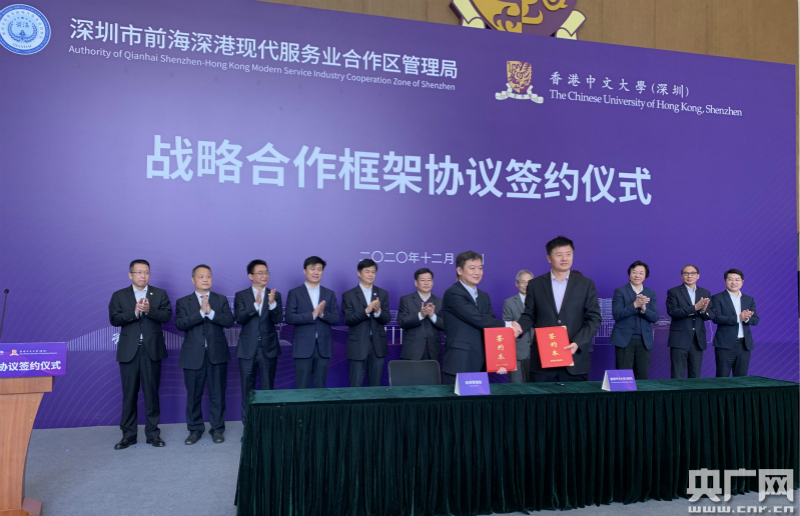 央廣網(wǎng)深圳12月7日消息(記者黃倩)深圳市前海深港現(xiàn)代服務(wù)業(yè)合作區(qū)管理局(以下簡稱前海管理局)與香港中文大學(xué)(深圳)[以下簡稱港中大(深圳)]戰(zhàn)略合作框架簽約儀式今天(7日)在深圳舉行。雙方將探索政府與大學(xué)合作新模式,在制度創(chuàng)新、科技創(chuàng)新、現(xiàn)代服務(wù)業(yè)、教育、醫(yī)療、社會民生等多領(lǐng)域開展創(chuàng)新性深度務(wù)實(shí)合作。