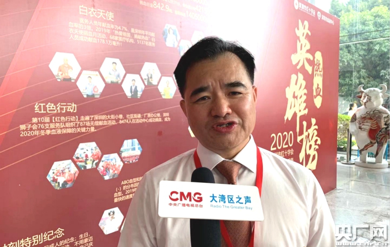 深圳市血液中心書記盧亮接受采訪(中央廣播電視總臺大灣區(qū)之聲記者 黃倩 攝)