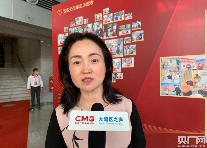 深圳市紅十字會專職副會長兼秘書長張英姬接受采訪(中央廣播電視總臺大灣區(qū)之聲記者 黃倩 攝)