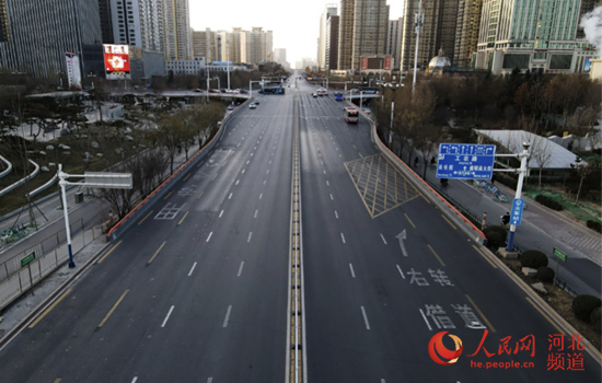 1月6日,石家莊市裕華路上車流量減少,人員流動得到有效控制。 楊磊濤攝