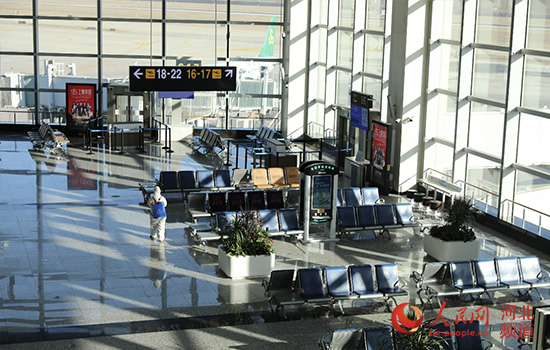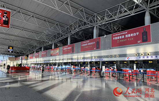 1月7日,石家莊機場多家航空公司取消航班,機場里不見了往日熱鬧的場景。 石家莊機場供圖
