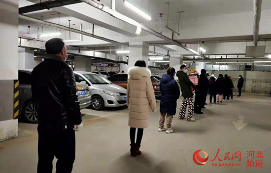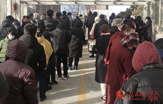 1月6日,石家莊市橋西區(qū)鼎明華庭小區(qū)的居民在排隊檢測。 崔艷婷攝