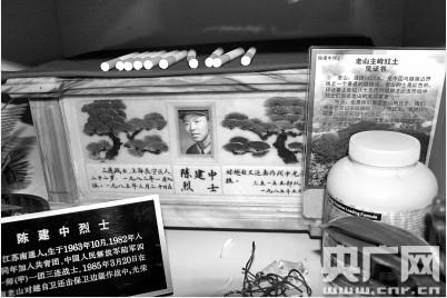 陳建中83歲的老父親,雙手顫抖著接過子彈殼,老淚縱橫。很多年了,他跟老伴一直沉浸在喪子之痛中,“但我們也為建中自豪,政府為他辦了追悼會,逢年過節(jié)還登門慰問!标惤ㄖ心赣H當年已經(jīng)86歲,得了老年癡呆癥,情況時好時壞。可當姚惠濤說自己是陳建中戰(zhàn)友、是來“認親”時,她突然清醒了,邊哭邊喊“中中”。