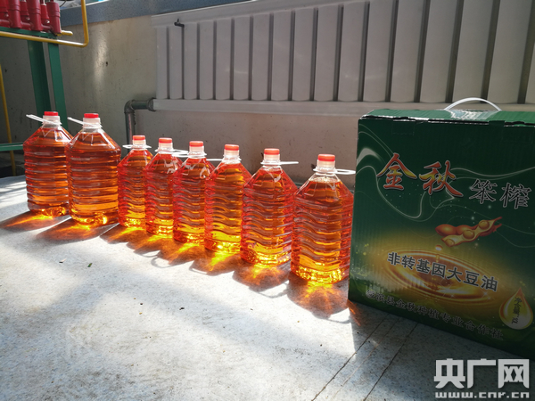 東北地區(qū)食用油以大豆油為主,對(duì)大豆油的需求十分龐大。楊志金是金秋笨榨大豆油作坊的負(fù)責(zé)人,他介紹說(shuō),他們采用的是笨榨的方法,類似古法壓榨,原材料都是合作社社員自家種植的非轉(zhuǎn)基因大豆,這種方式壓榨出來(lái)的大豆油口感好、顏色漂亮。超市里普通大豆油賣七八塊錢一斤,金秋笨榨大豆油能賣到15元一斤。