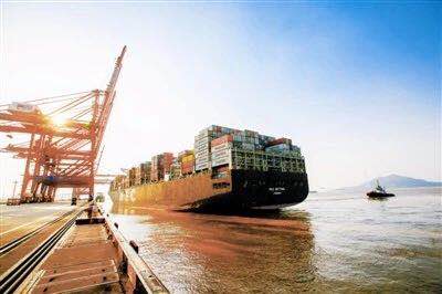 2017年5月9日,一艘即將駛往西班牙的貨輪駛離寧波舟山港穿山港區(qū)集裝箱碼頭。