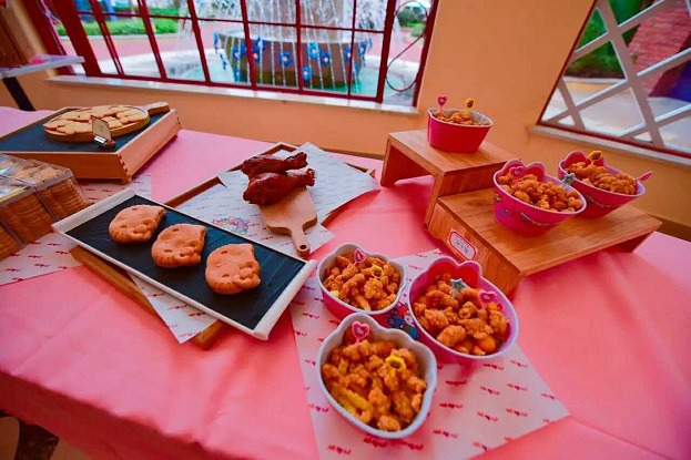 Hello Kitty樂(lè)園邀請(qǐng)了日本三麗鷗彩虹樂(lè)園總廚茅野多巳男先生,為游客們特別研發(fā)制作了近百種萌萌噠Hello Kitty主題美食。Hello Kitty櫻花壽司、大眼蛙三明治、巧克力芝士美樂(lè)蒂蛋糕、蝴蝶結(jié)里昂那啤酒腸、Hello Kitty甜甜圈……可愛(ài)精致的造型、甜蜜爽滑的口感,無(wú)論大人、小孩,都會(huì)被這些高顏值美食激發(fā)童心,挪不動(dòng)腳步。